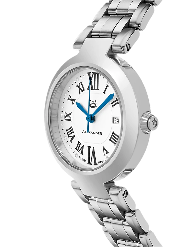 - Elegant dial features Roman numeral hour markers and a date display at the 3 o’clock position.