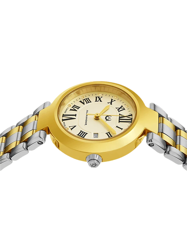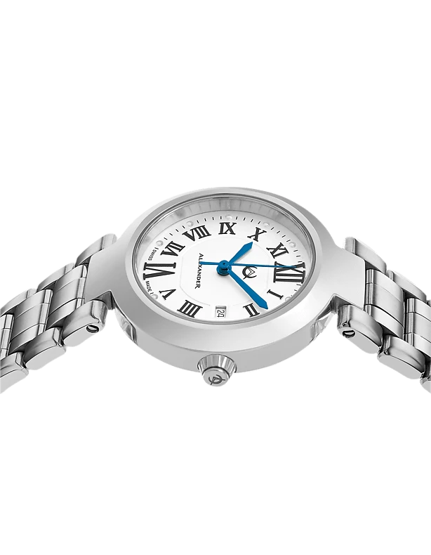 The Niki A203B blends elegance with precise functionality. Featuring a 32mm stainless steel case, this ladies’ watch is powered by a reliable Ronda 785 Swiss Quartz movement. The dial, adorned with Roman numeral hour markers, exudes timeless sophistication. With a case thickness of just 8mm, the Niki A203B sits comfortably on the wrist. The scratch-resistant sapphire crystal and stainless steel 5-segment link bracelet ensure both durability and style. Water-resistant up to 5 ATM, this watch is designed to withstand everyday wear.