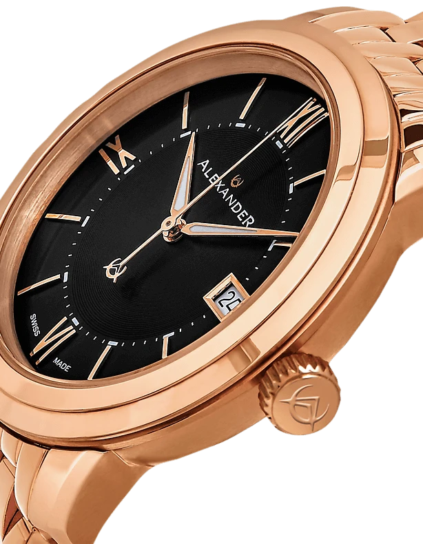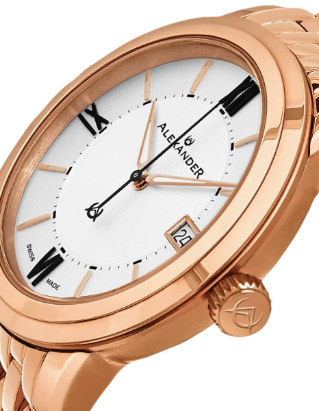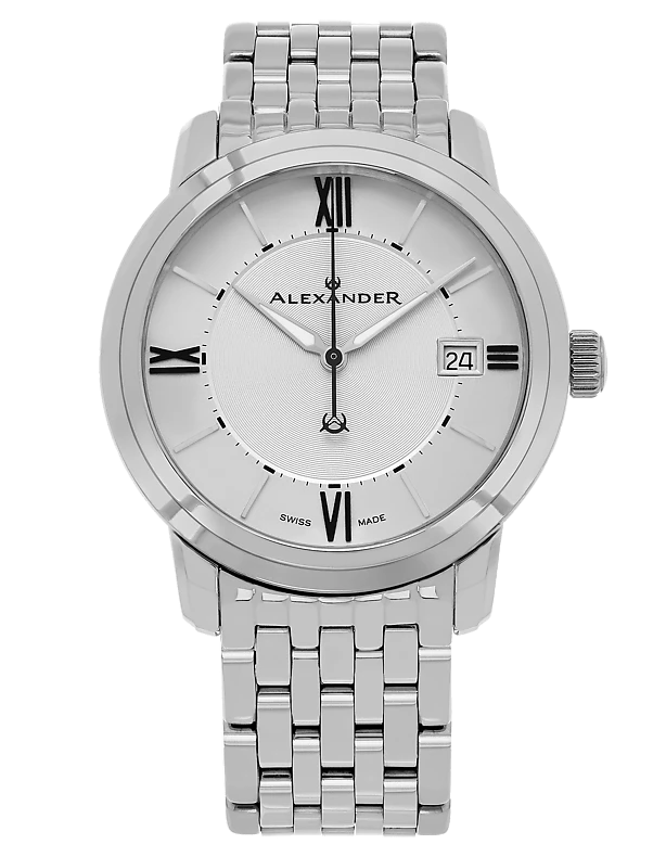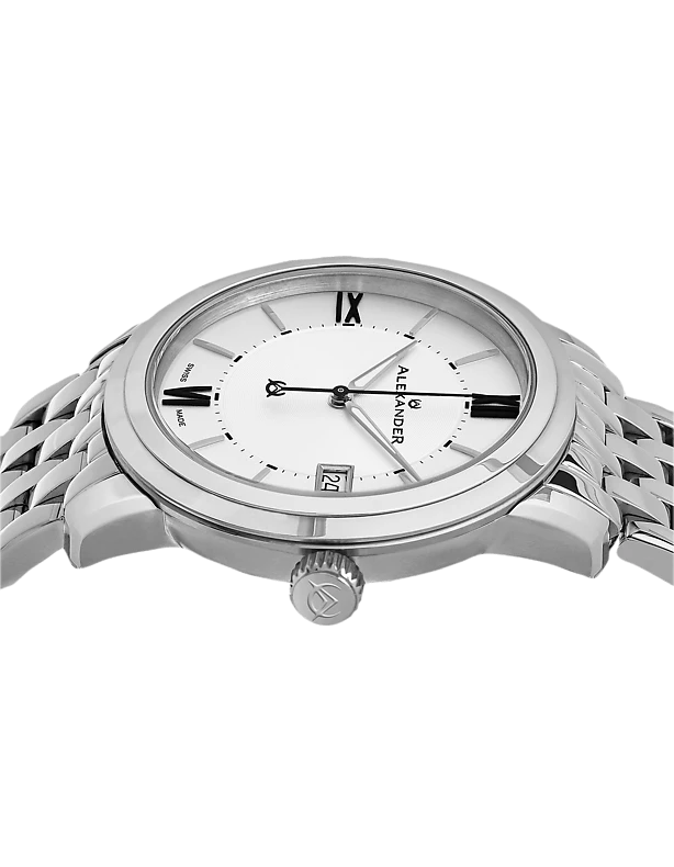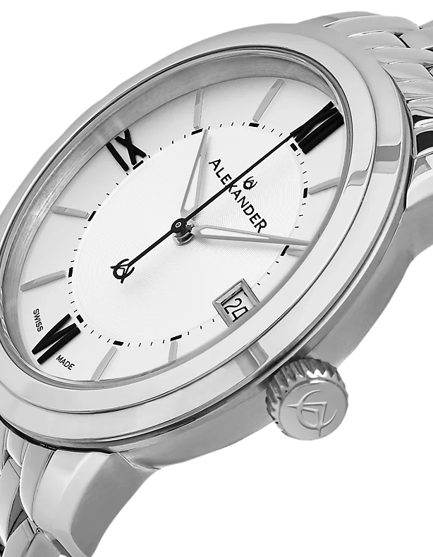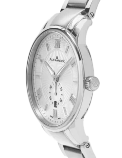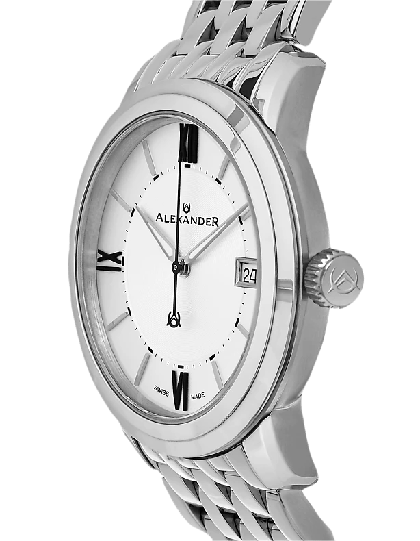 The Swiss Made Macedon A111B combines classic design with modern precision. This elegant timepiece features a 40mm 316L surgical grade stainless steel case, powered by the reliable Ronda 715 Swiss Quartz movement. The sophisticated dial, adorned with applied baton indexes and Roman numerals, is complemented by alpha hands with luminous infill. With a case thickness of 10.45mm, the Macedon A111B offers a refined yet sturdy profile. The scratch-resistant sapphire crystal and 5 ATM water resistance ensure durability and versatility. This watch is the perfect accessory for any occasion, offering both style and functionality.