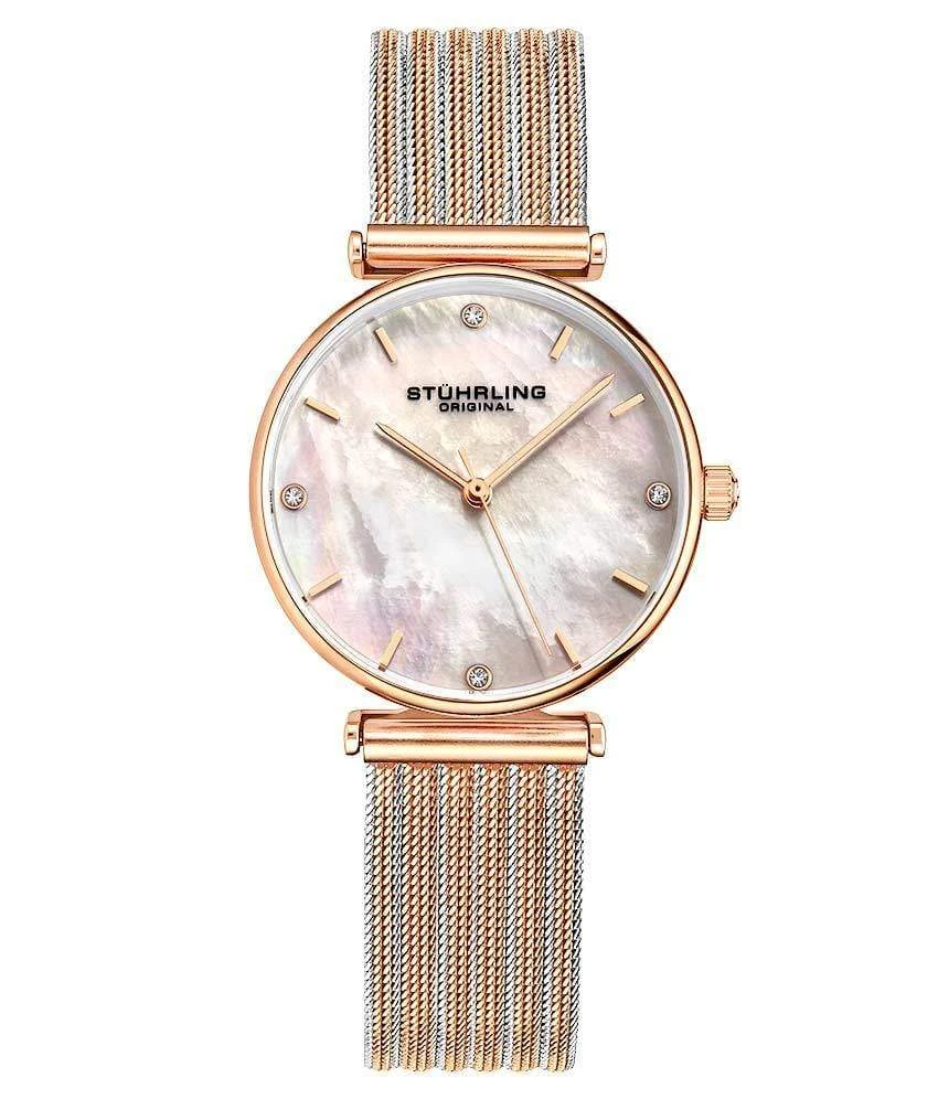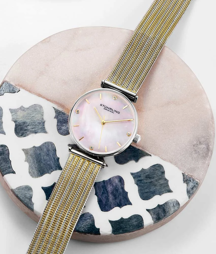 - A sleek 15mm stainless steel mesh bracelet keeps the Cambria hugging your wrist with unparalleled comfort.