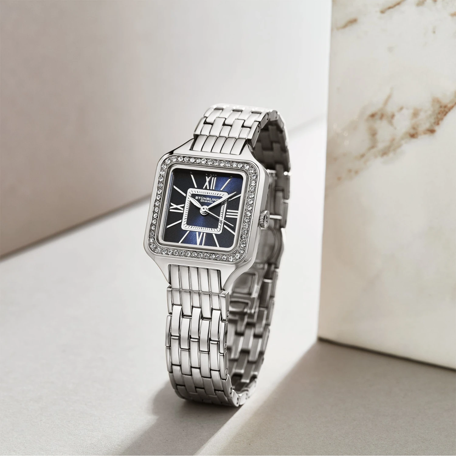 Entrust your style to the Confidant watch! With its leaf-style hands and structured shape, this watch was made for our Stuhrling woman who like to make a bold statement when they enter a room.