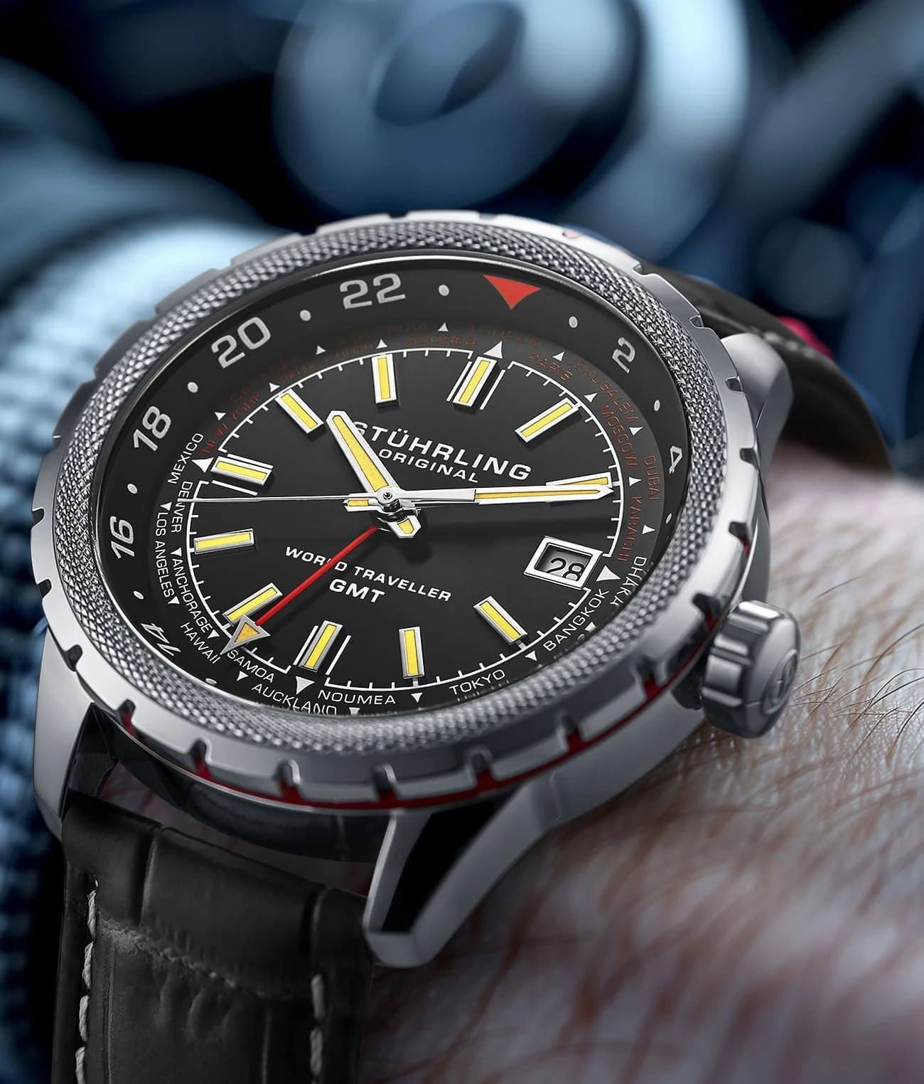 The Global Voyager GMT Watch is your ticket to precision timekeeping and world exploration. Equipped with Swiss Quartz movement (Calibre 515.24H) and housed in robust stainless steel, this timepiece is as reliable as it is stylish. Its bidirectional bezel aids in tracking time zones, while the GMT feature ensures you’re always in sync with global destinations.