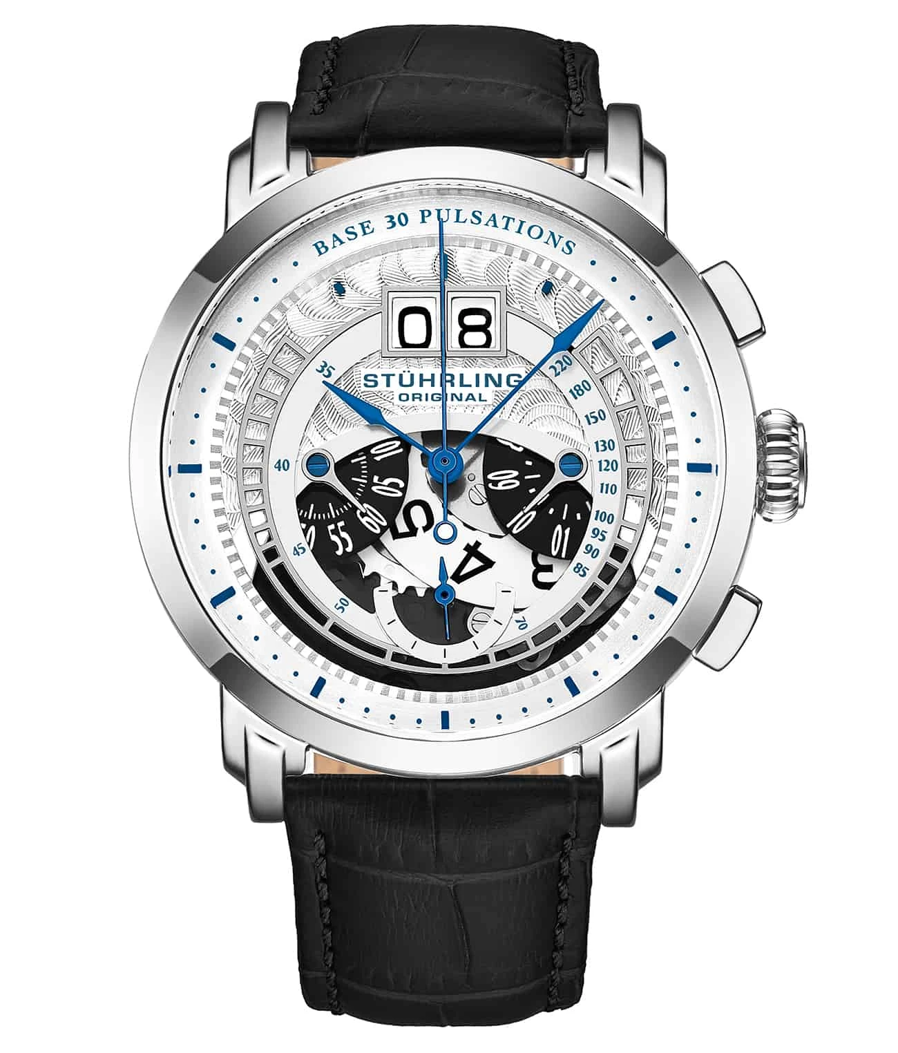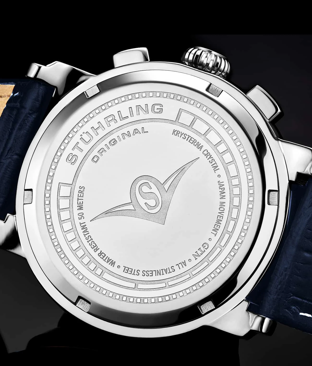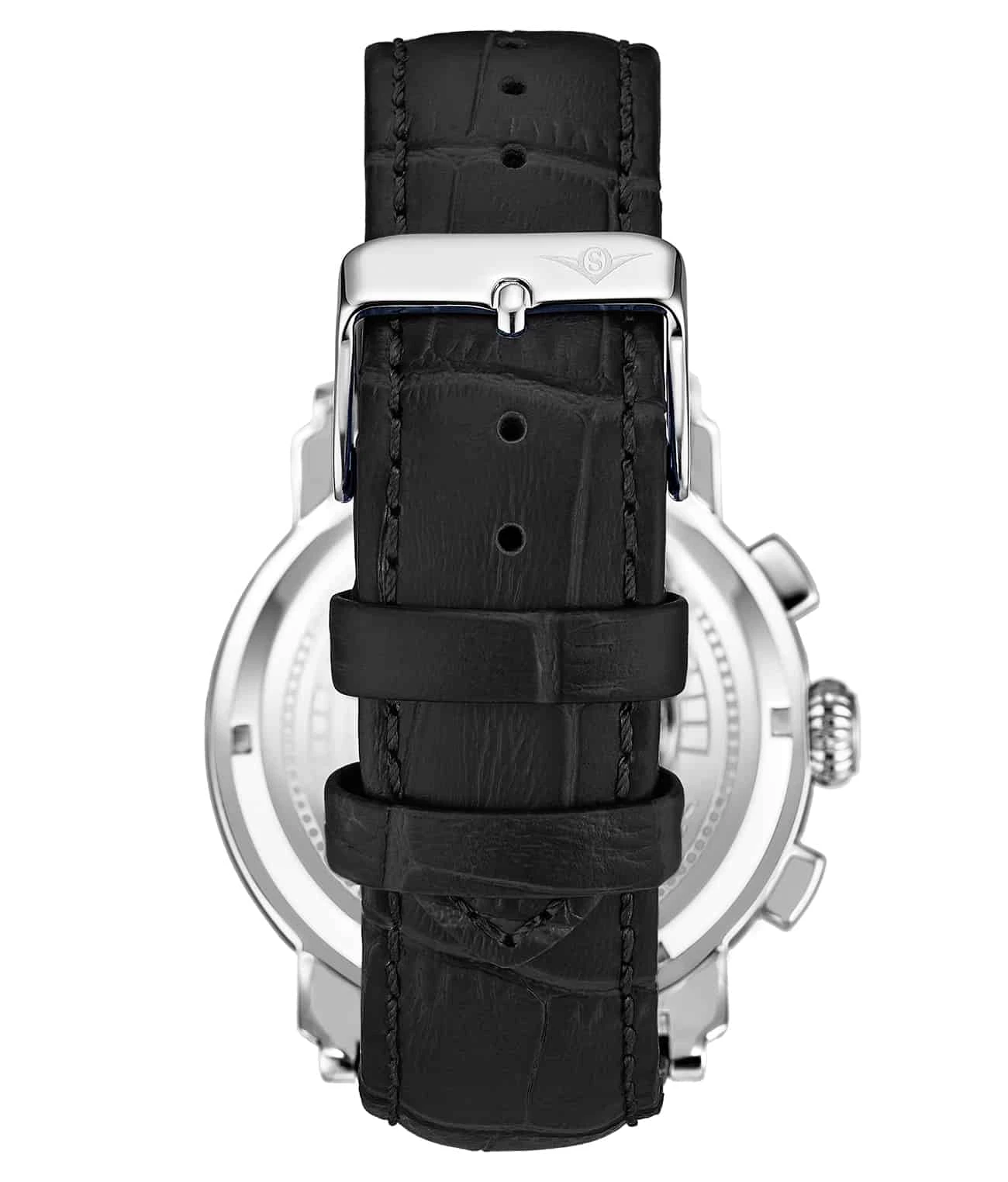 The Imperia 4013 is a versatile 44mm chronograph that confidently serves both as a sporty and a dress watch. It features not just a stopwatch function typically found in chronographs but also boasts a tachymeter and pulsometer, enhancing its utility for tracking speed and heart rate, respectively. This functionality, combined with a robust stainless steel bezel and a water resistance of 5 ATM, is elegantly set against the classic style of the genuine leather strap, making it an excellent choice for those who value both form and function in their timekeeping instruments.