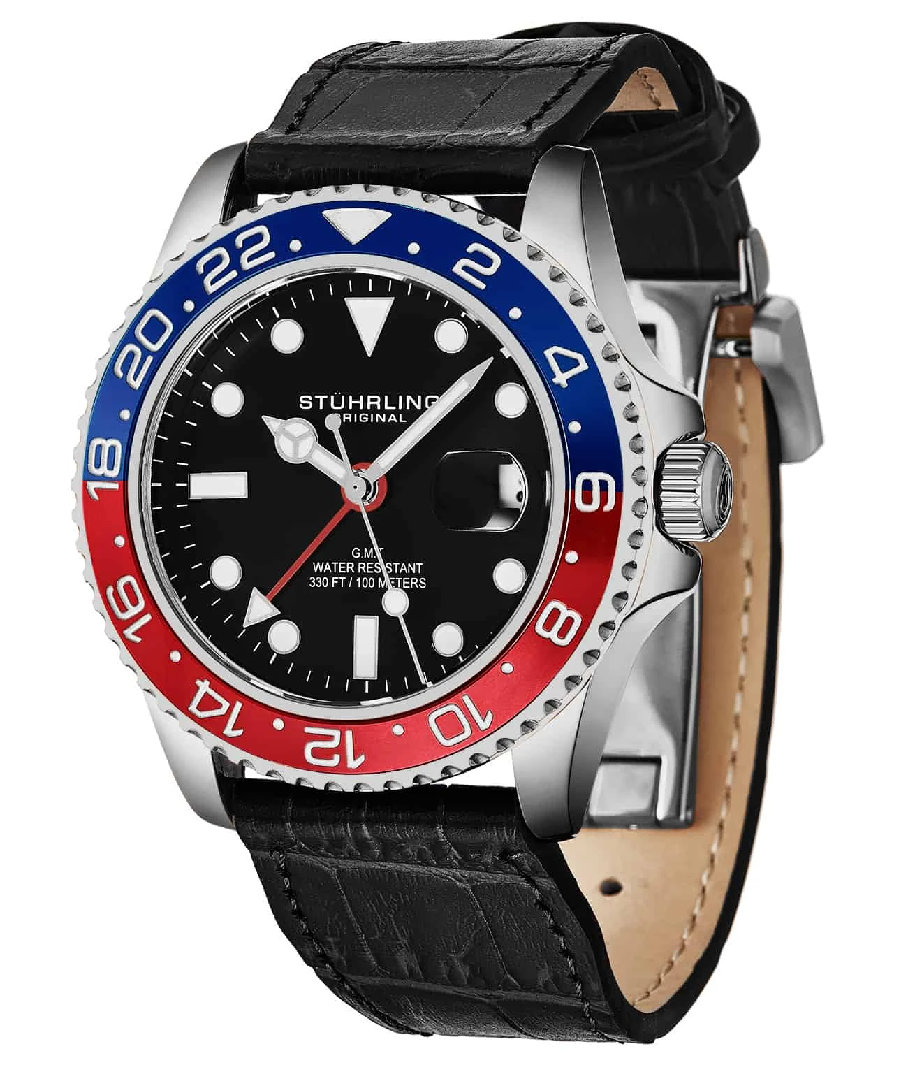 A crown jewel of the aquadiver collection, the Meridian GMT Diver features Quartz movement for ultra-precision while staying water-resistant up to 330 feet.