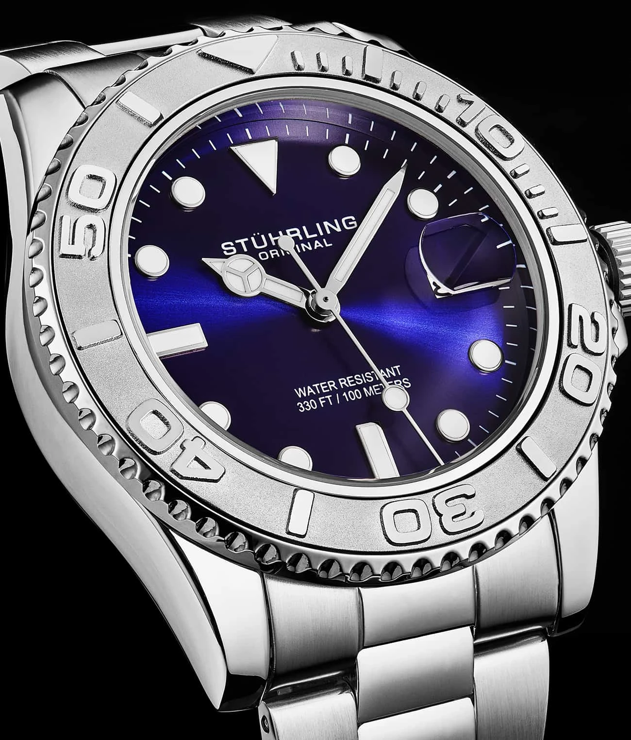 - This quartz diver has a link bracelet and stainless steel push summary deployant with safety clasp. Now you can stay stylish and be rest assured that your watch is secure 24/7.