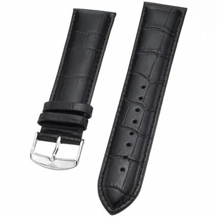 24 mm Black Leather Replacement Strap with a Steel Tang buckle. This is a direct replacement for Stuhrling model 1077.