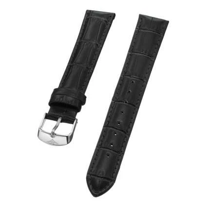 18 mm Black Leather Replacement Strap with a Steel Tang buckle. This is a direct replacement for Stuhrling model 107BL.