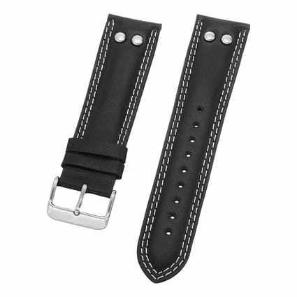 24 mm Black Leather Replacement Strap with a Steel Tang buckle. This is a direct replacement for Stuhrling model 141A.