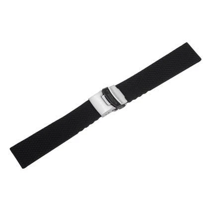 22 mm Black Rubber Replacement Strap with a Steel Deployant buckle. Stuhrling model 160.