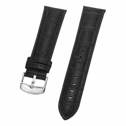 22 mm Black Leather Replacement Strap with a Steel Tang buckle. This is a direct replacement for Stuhrling model 574.