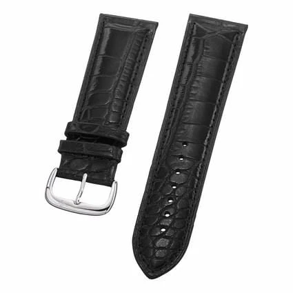 24 mm Black Leather Replacement Strap with a Steel Tang buckle. This is a direct replacement for Stuhrling model 590.