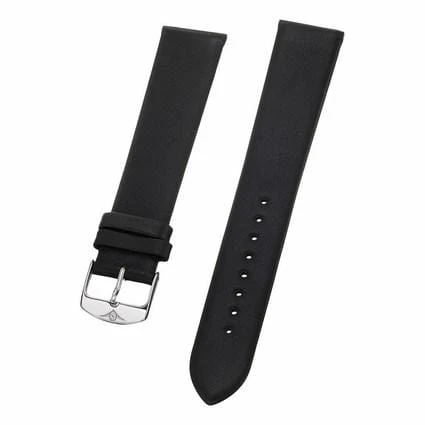20 mm Black Leather Replacement Strap with a Steel Tang buckle. This is a direct replacement for Stuhrling model 734G.
