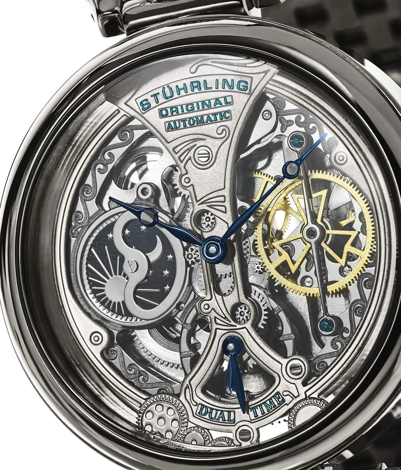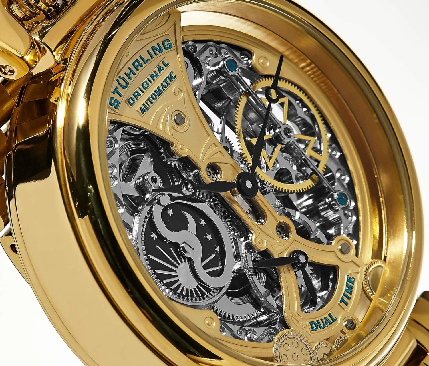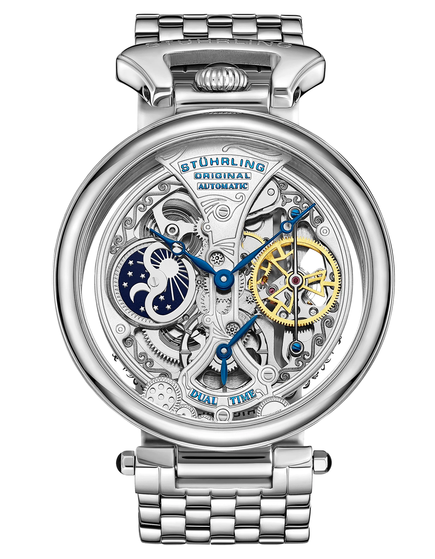 - The animated AM/PM indicator and second time-zone subdial pair perfectly with an onion crown and crown guard at 12 o’clock, making for a one-of-a-kind timekeeping experience.