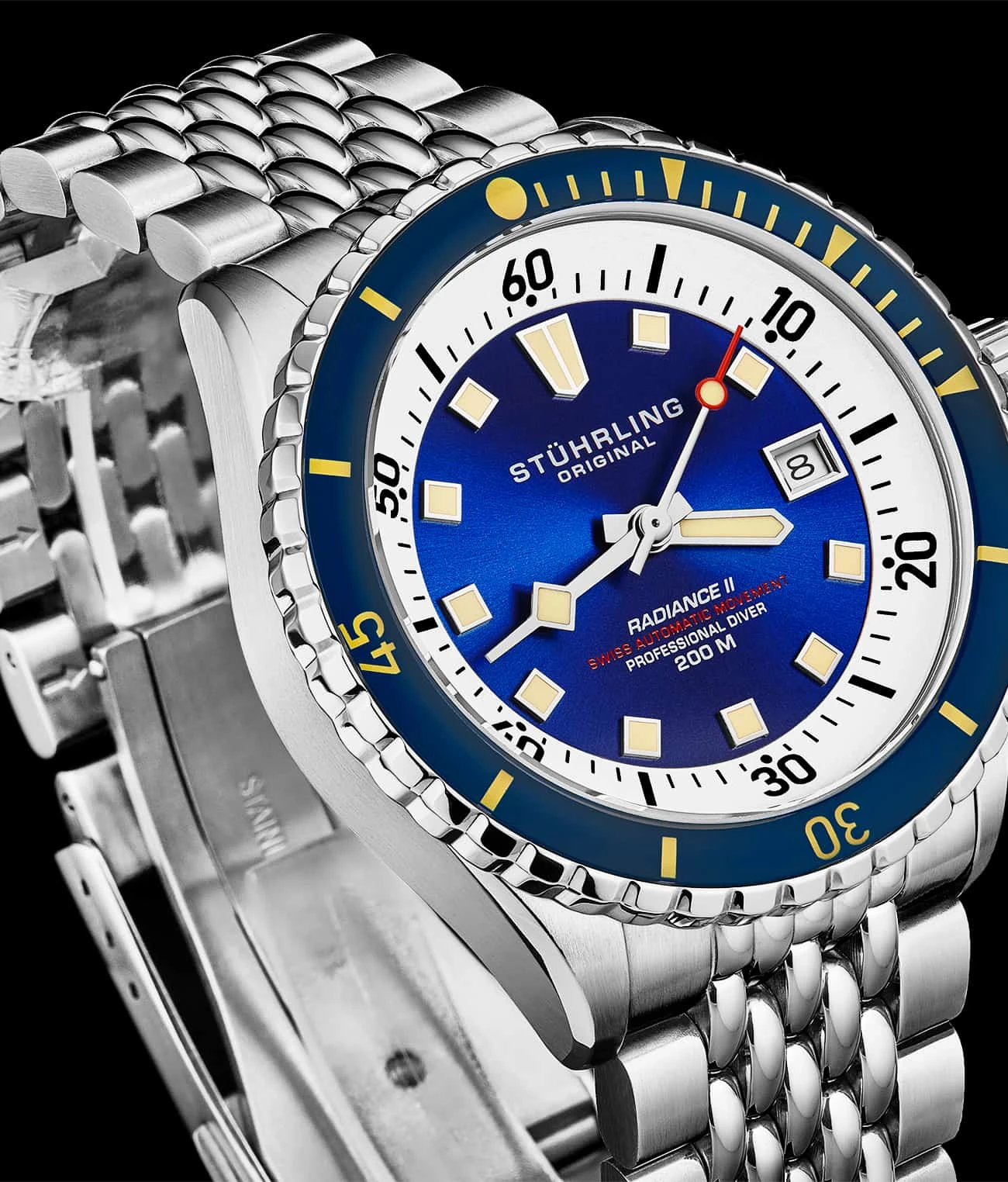 Step into the world of refinement and performance with the Swiss Automatic Radiance 42mm Diver. This masterfully crafted timepiece is designed for those who demand precision, reliability, and style. With its robust 42mm case, Swiss automatic movement, and diver-inspired aesthetics, it’s a watch that effortlessly combines function and elegance for every occasion.