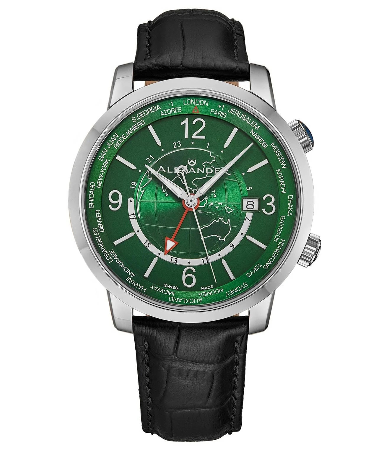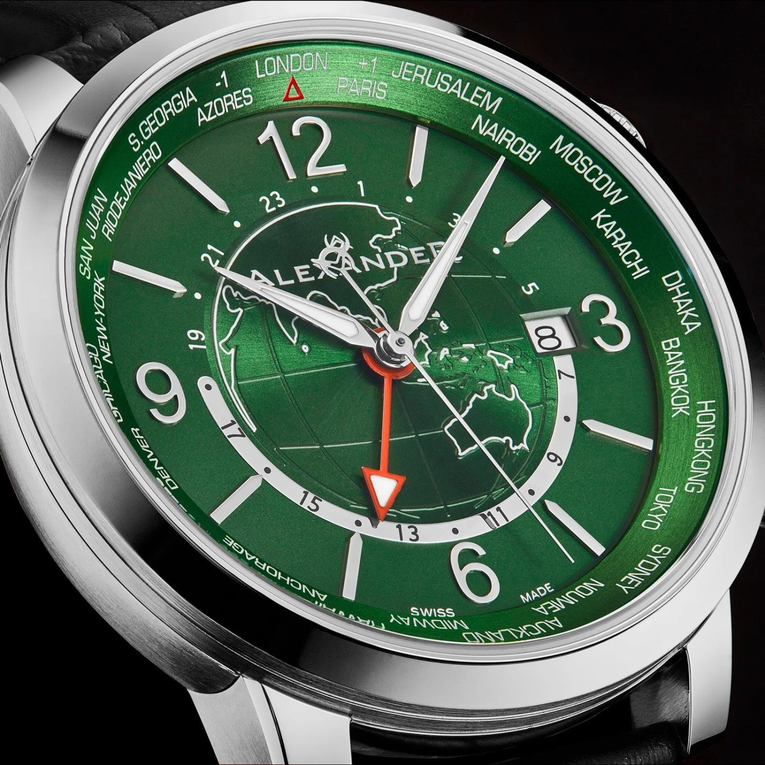 The A171A Journeyman watches are perfect for modern world travelers. With a 42mm stainless steel case, 50m water resistance, and a sunray Earth pattern dial, these watches offer both style and functionality. Powered by a Swiss Made Ronda 515.24 GMT Quartz movement, they’re ideal companions for globetrotters.