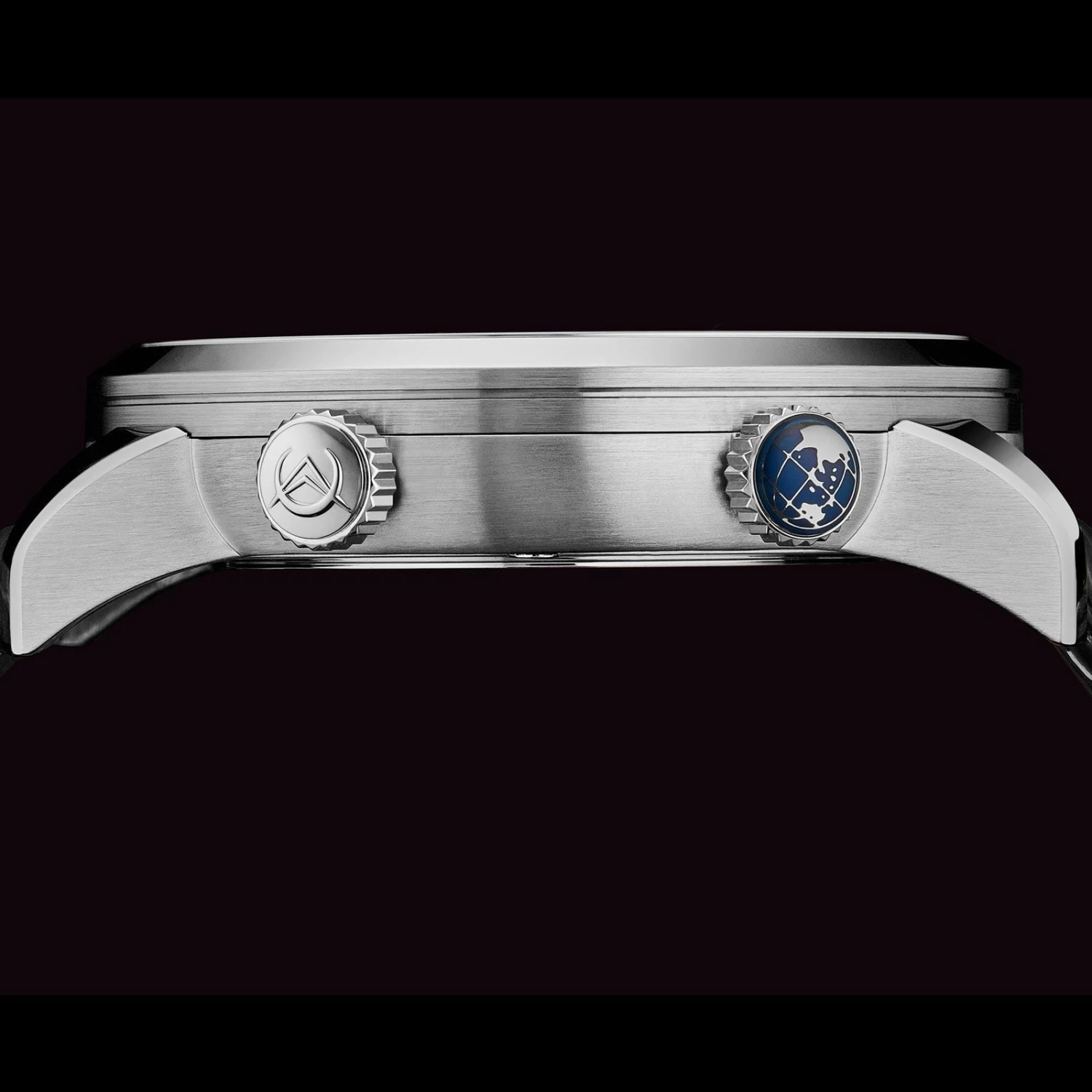 - Dark blue enamel Earth pattern coating on the rotating crown.